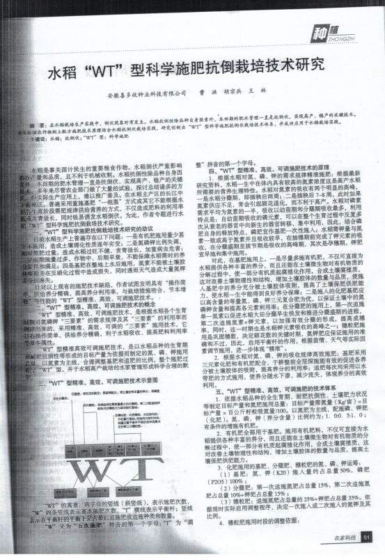 “水稻W(wǎng)T型科學施肥抗倒栽培技術(shù)研究”在《農(nóng)家科技》2017年第8期公開發(fā)表