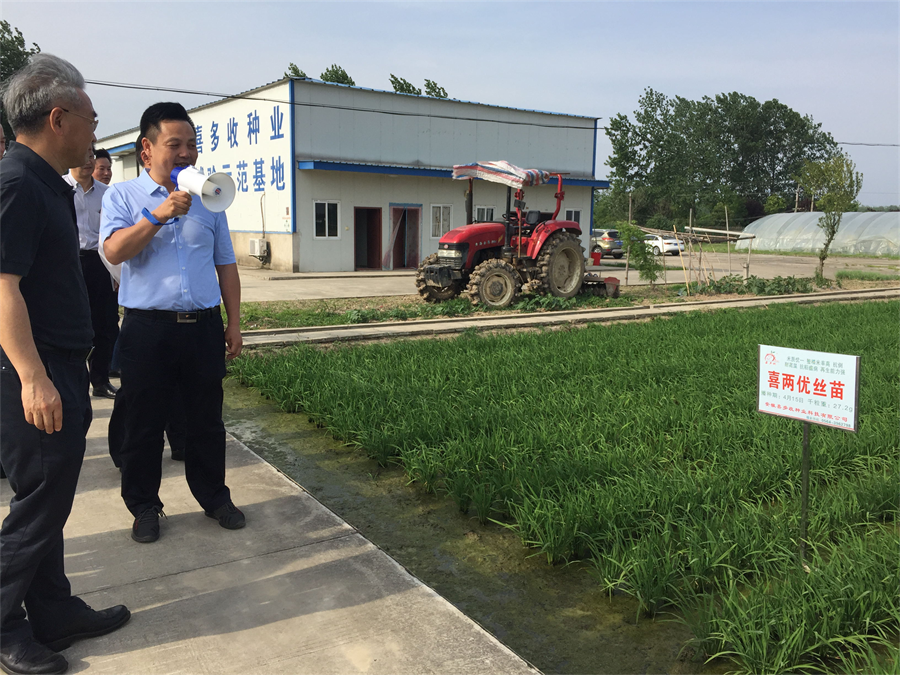 我公司胡宗兵總經(jīng)理帶領公司科研人員、農(nóng)技人員及全體員工熱烈歡迎張?zhí)伊忠恍校?/span>在安徽喜多收種業(yè)種植基地,張?zhí)伊?/span>副部長同胡宗兵總經(jīng)理及農(nóng)業(yè)專家、基層農(nóng)技人員親切交談,聽取基地近年來在創(chuàng)新育種方面的情況匯報,詳細了解企業(yè)核心雜交水稻在種子研發(fā)、繁育、推廣等方面所做的工作。張?zhí)伊?/span>副部長充分肯定了我公司科技創(chuàng)新做法,并鼓勵我公司積極適應現(xiàn)代種業(yè)發(fā)展需要,進一步優(yōu)化資源配置,提升選育、試驗、示范工作力度,深化產(chǎn)學研合作,加快育種和推廣速度,起到企業(yè)領頭帶領作用,推動地方農(nóng)業(yè)產(chǎn)業(yè)發(fā)展升級。