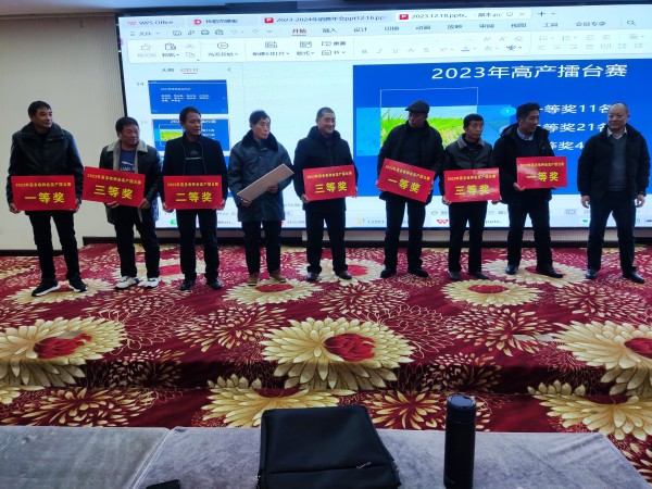 會議第二項由安徽喜多收種業(yè)的副總經(jīng)理趙見朝先生對公司2024年度水稻銷售優(yōu)惠政策進(jìn)行了詳細(xì)的解讀,實現(xiàn)共贏!同時公司副總經(jīng)理趙總公布了2023年優(yōu)秀合作伙伴及高產(chǎn)擂臺賽名單,公司兩位老總為他們頒獎。