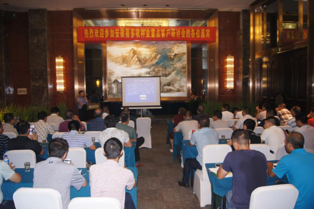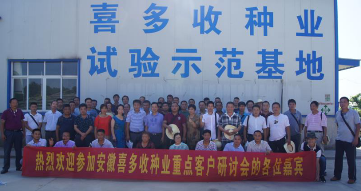 安徽喜多收種業(yè)重點(diǎn)客戶研討會于2017年7月21-22日在六安萬乘云漢大酒店召開。來自湖北、河南、安徽等省的種業(yè)界科技工作者和水稻新品種產(chǎn)業(yè)化企業(yè)代表50余人出席本次研討會。與會代表參觀了安徽喜多收種業(yè)科技有限公司研發(fā)中心、喜多收種業(yè)試驗(yàn)示范基地;聆聽了公司董事長兼總經(jīng)理胡宗兵高級農(nóng)藝師所作的“融合夢想、共贏未來”的主題報告;來自湖北、河南的客戶代表交流了水稻新品種深兩優(yōu)571、C兩優(yōu)198綠色高產(chǎn)栽培技術(shù);公司副總經(jīng)理朱德眾高級農(nóng)藝師作“加速成果轉(zhuǎn)化、振興民族種業(yè)”主題發(fā)言。與會人員歡聚一堂、暢所欲言,就水稻新品種的選育目標(biāo)、栽培技術(shù)、市場需求、成果轉(zhuǎn)化等問題展開了熱烈的研討,對水稻新品種的推廣應(yīng)用充滿信心。