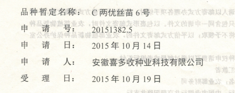 C兩優(yōu)絲苗6號品種權申請受理通知書