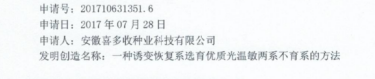 發(fā)明專利《一種誘變恢復系選育優(yōu)質光溫敏兩系不育系的方法》專利申請受理通知書