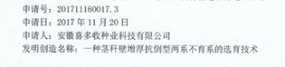 發(fā)明專利《一種莖稈壁增厚抗倒型兩系不育系的選育技術(shù)》受理通知書