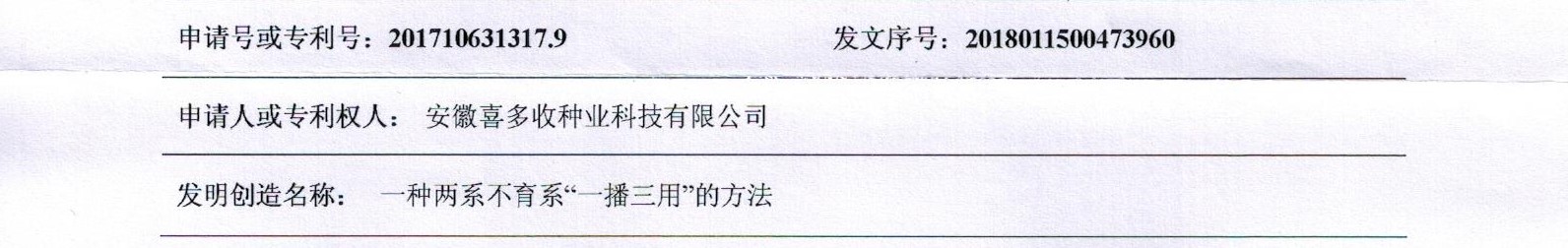 發(fā)明專(zhuān)利《一種兩系不育系“一播三用”的方法》實(shí)審?fù)ㄖ獣?shū)